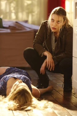 When Chloe and Lucifer go to interview Daria’s roommate, Naomi, they are let in by their neighbor, Lily, who says that the women all feed each others cats. Lucifer weighs in, “I detest cats. Want an animal to stare at you with contempt? Get a cat. Open box of excrement in your house? Cat. Can you smell that? Foul, incontinent creatures.” The scent he assumes is cat, however, is in fact Naomi, also dead from mandrake poisoning. Naomi's body also has a triangular stamp on the wrist.