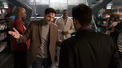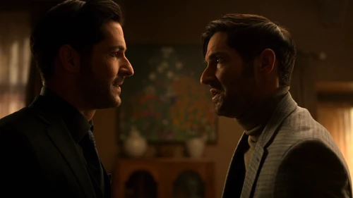 Upon learning about Michael's schemes, Amenadiel traveled to Hell to inform Lucifer about their brother attempting to take over his life. Lucifer returned to Earth to stop him. Eventually, Michael meets him at his penthouse, now sporting his own look since his identity was exposed, Michael extended his wings to greet his twin. With Lucifer doing the same, the brothers locked eyes after thousands of years away from each other.