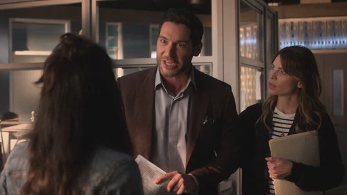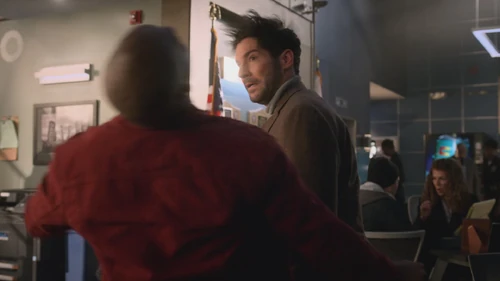 The next day, Michael met up with Chloe to question Anders Brody at his press conference. he continues to put on the façade of trying to explain last night, but Chloe didn't want to talk about. Once they got through the crowd of reporters, Brody confused Michael for Lucifer and hugged him for helping find forgiveness; Michael goes along with it until Chloe reveals herself as LAPD.