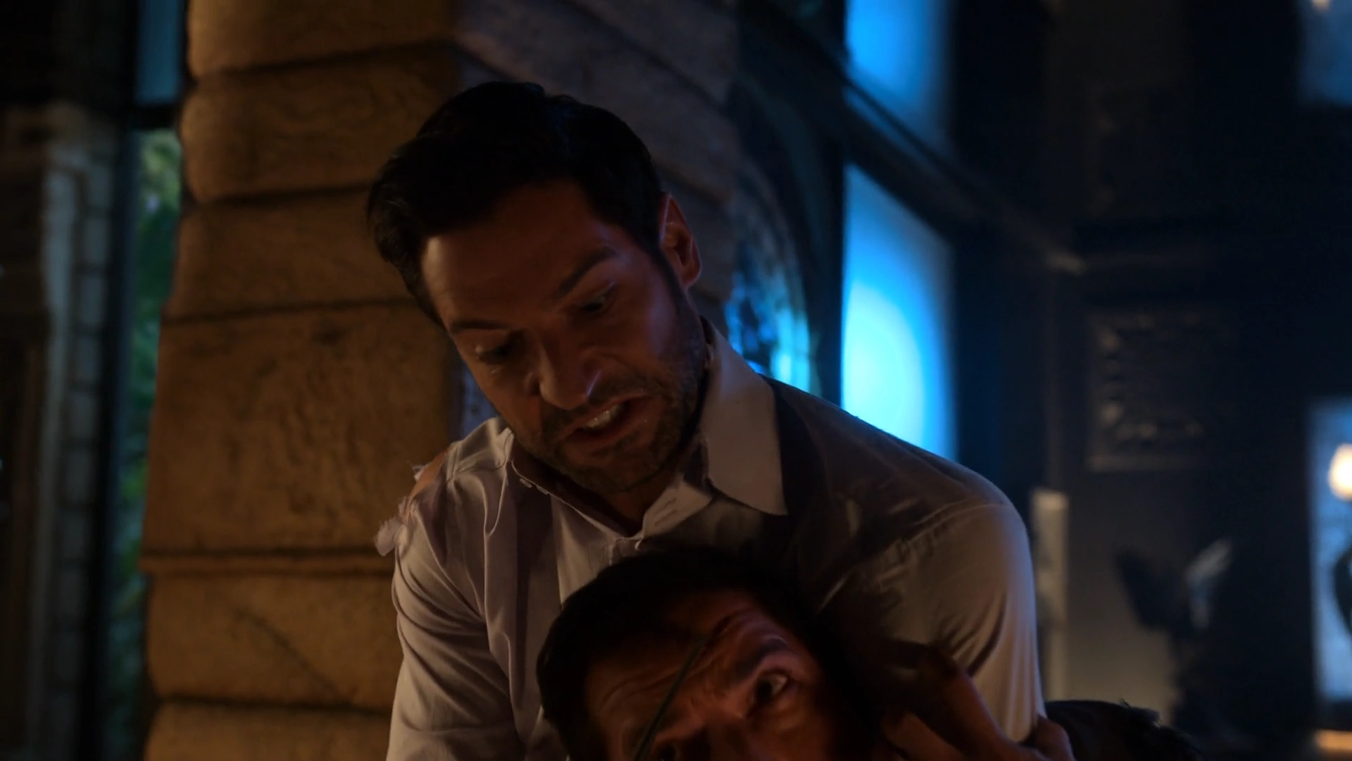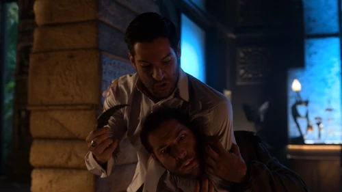 Returning to his normal demeanor, Michael agreed with Maze and told her that he's changed his plans of ruining Lucifer's life to taking it instead. Michael then surprises Maze by wrapping his arm around her throat and choked her out before she could stop him. He then hides her in the closet, chained, as Chloe enters, calling for him. He returns to his Lucifer façade and comes out to greet her.