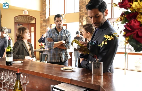 Lucifer and Chloe decide to go through Maze's past bounties to see if they can turn up anything, the interviews have the pair of them giggling over Maze's antics, and Pierce watching from observation is irritated at the obvious bond between them. Dan shrugs and tells him, “All I know is that they have a real connection. They're a package deal now.” Pierce voices the opinion that Lucifer could be got rid of. The last of the interviews, gives them a new lead – a connection back to the winery.