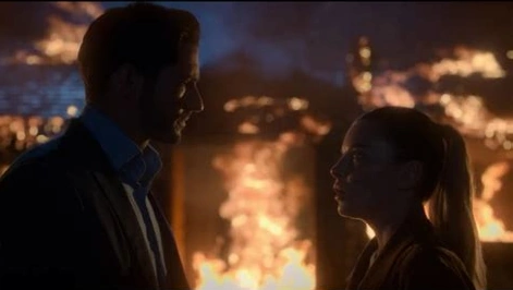 Maury then shows Chloe footage of Melinda and Kylie kissing in the shower despite the fact there were supposed to be no cameras in the bathrooms. Chloe wants to question Kylie again, so they search the monitors for cast locations, but Kylie isn’t there. Maury spots her breaking the gas line behind a cabin. She sets the cabin on fire just as Lucifer enters that same cabin. Chloe is horrified, terrified for the Devil's safety. When the cabin erupts into a ball of flame, Lucifer walks out without a scratch. Chloe rushes to his side, betraying her real feelings.